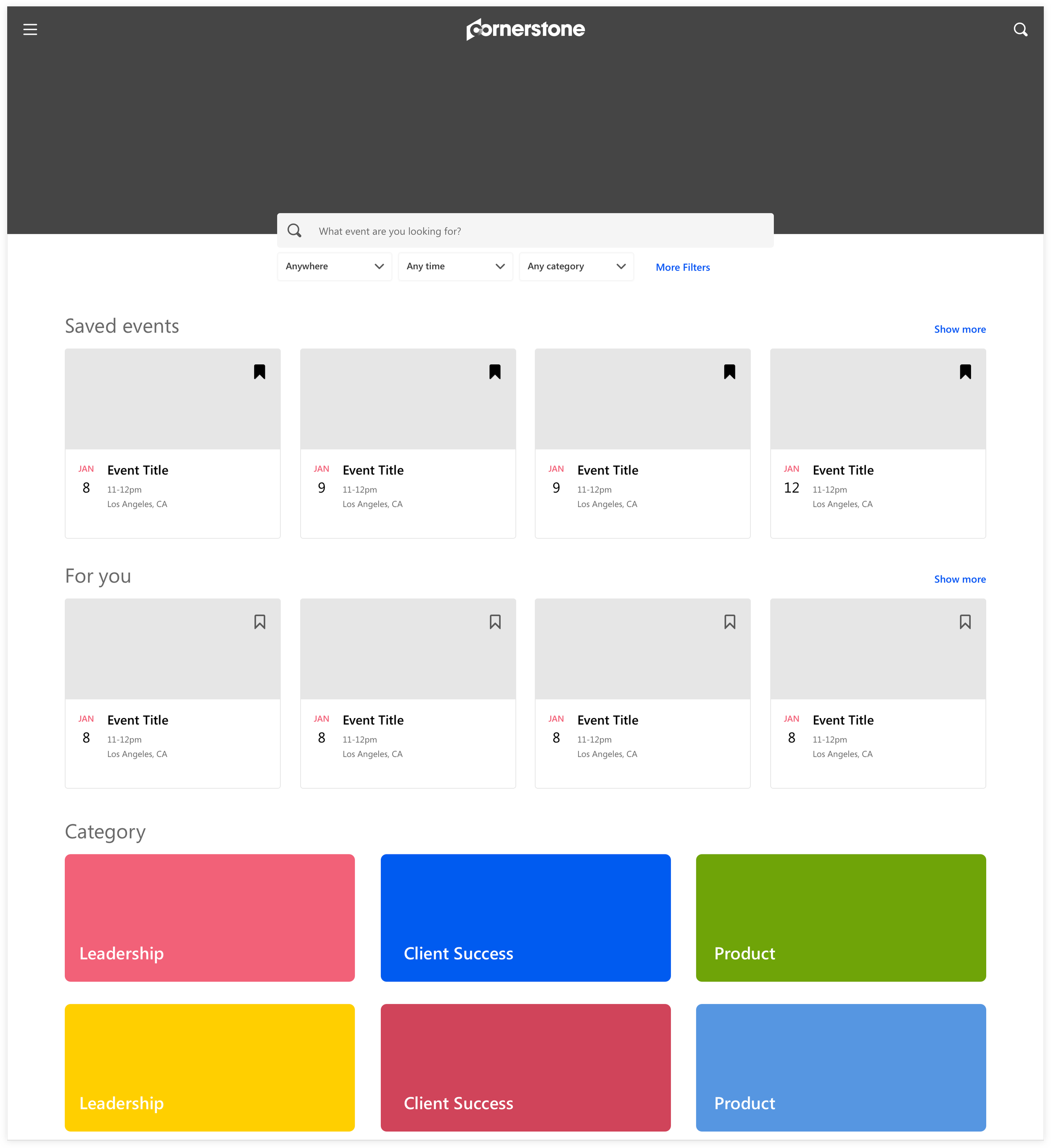 After we tested a few mockups with volunteered client data, we realized event graphics are rarely used. In the end, placeholder images took up a lot of space and was more noise than anything.