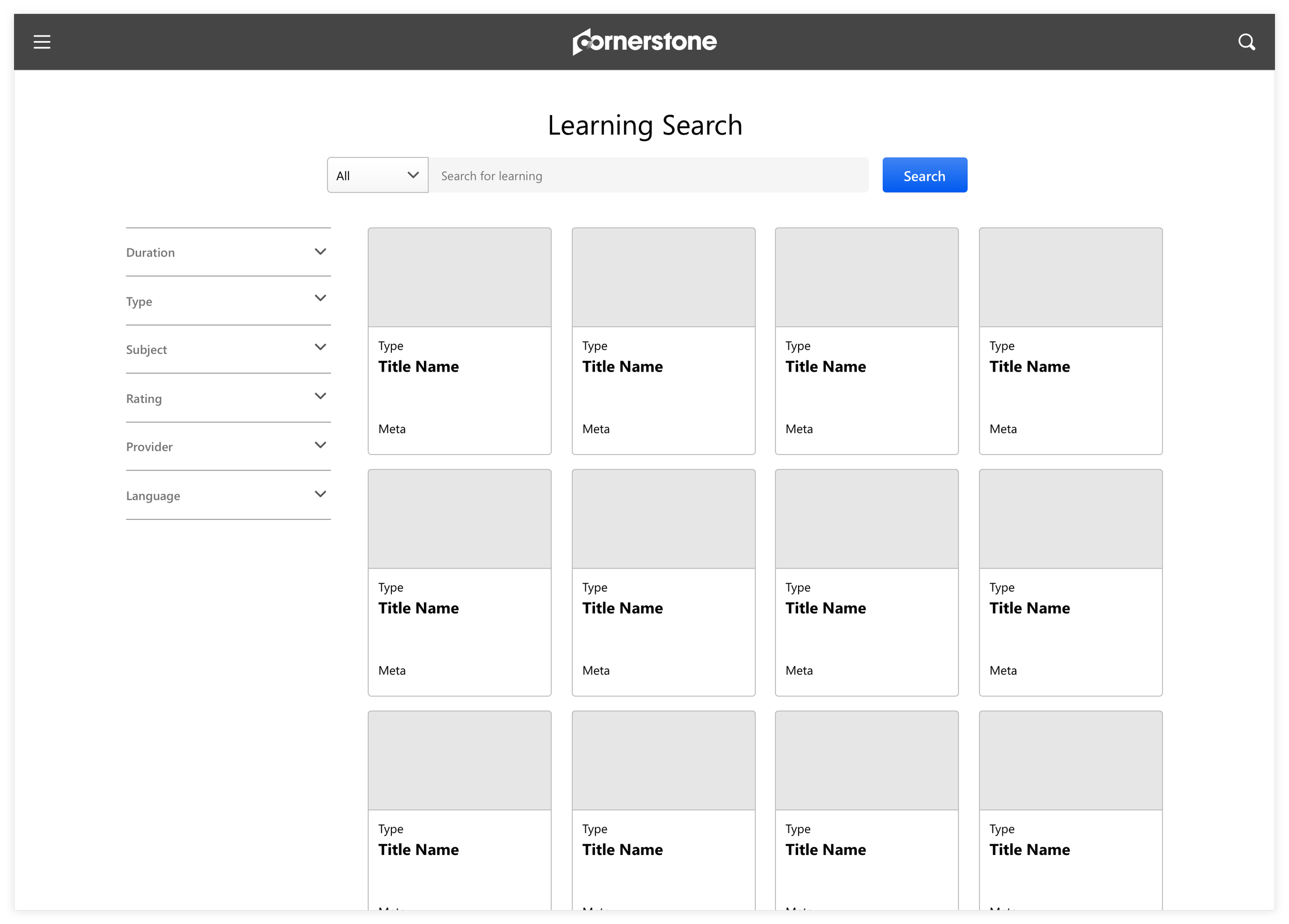 We pulled back to a more utilitarian approach, which paired well with the existing Learning core flow. Also, putting a more emphasis on search helped keep the experience simple and receptive to what the learner is intended to do.